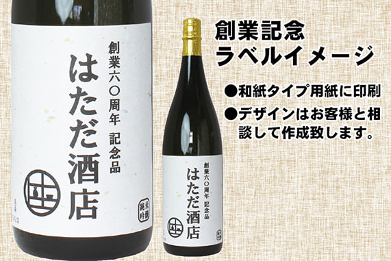 | 2 | ラベル作成 | ●お客様のご要望を基に作成致します。画像等をラベルに載せることも可能ですので、画像データをメール(info@hatada-sake.com)で送信して頂くか、事前に電話連絡の上店頭へ写真をご持参ください。 ●ラベル用紙は「和紙タイプ」と「光沢紙タイプ」がございます。ご希望の用紙をお申し付けください。 ●ラベルはお客様ご自身で作成することも可能ですが、Adobe Illustratorで作成して頂く事となります。弊店指定の「.aiファイル」を送信致しますので、そのファイルにて作成して送信してください。 |